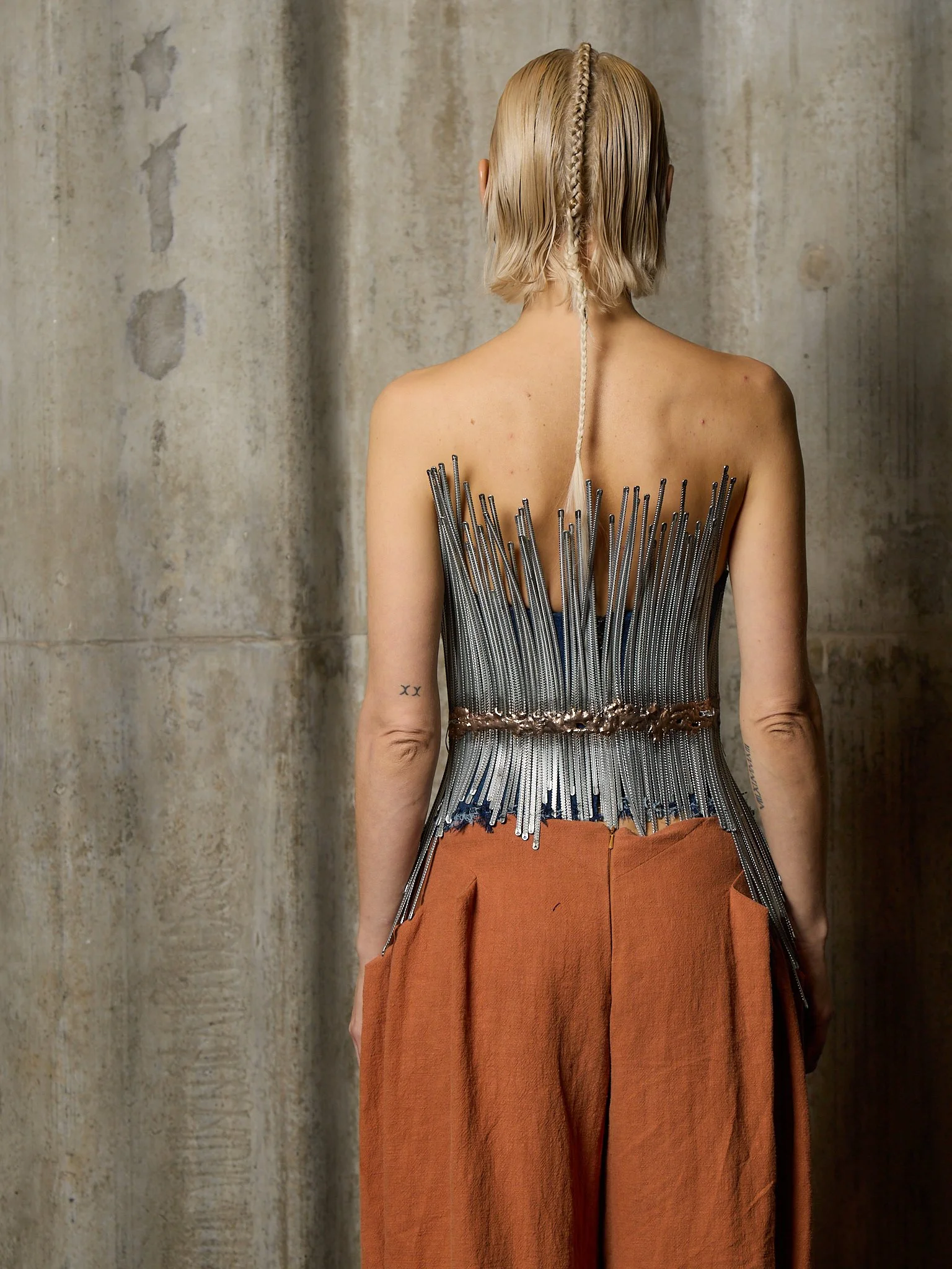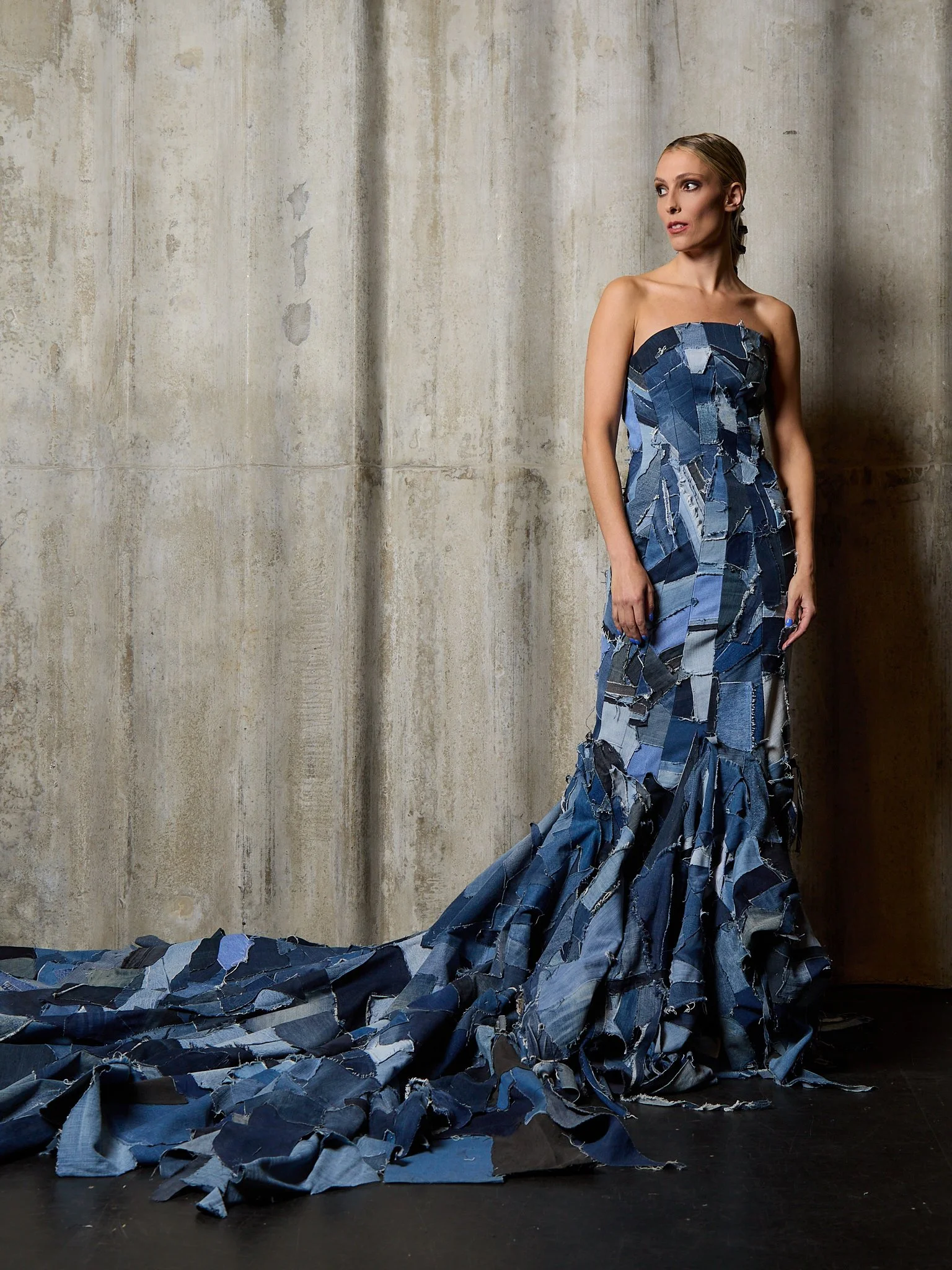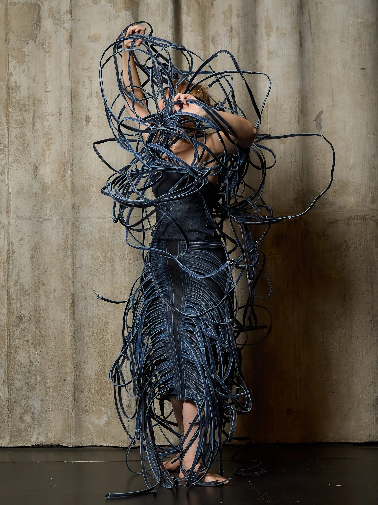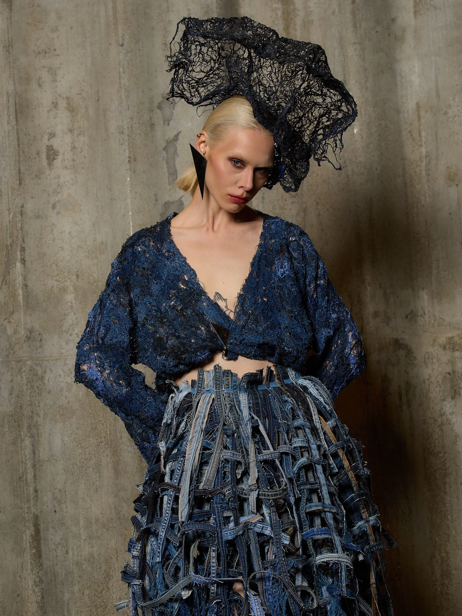 LUKS sustainable is a testament to my dedication to sustainability, and aims to showcase my ability to create wearable art from unconventional materials. I have taken broken down jeans and hand-woven them into unique forms and shapes, creating pieces that are not only stylish, but also eco-friendly.